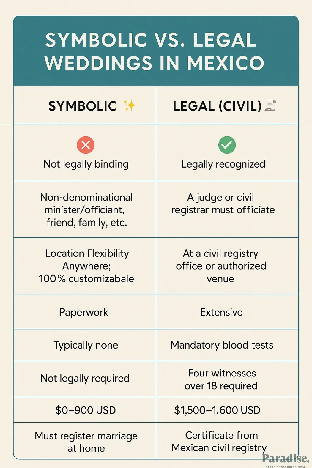 If you’re torn between a symbolic and a legal wedding in Mexico, here’s what you need to know: