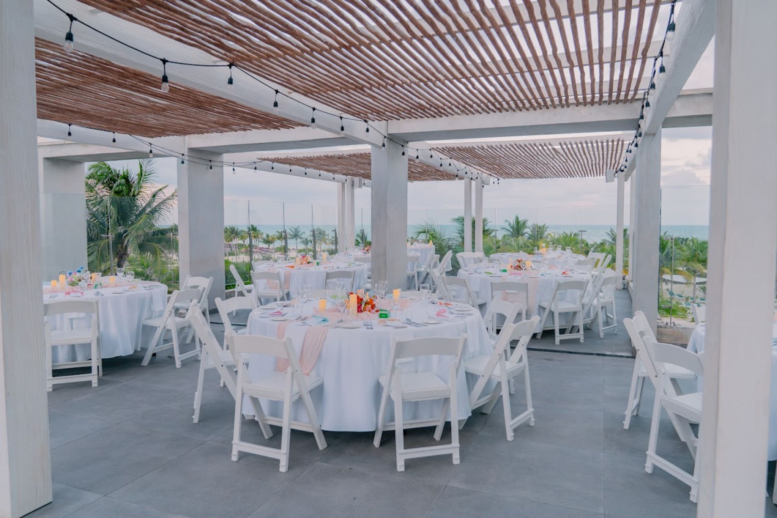 We recommend the Privileged Romance Deluxe Swim-Up Suite for the bride and groom’s accommodations. This elegant suite is 624 square feet, with a separate bedroom and living room. The suite features a Jacuzzi tub and opens out onto an oversized terrace with its private plunge pool and lounge chairs. You’ll get to enjoy the perks of being a Privileged guest, like a VIP beach zone, an exclusive restaurant, and a welcome bottle of sparkling wine.