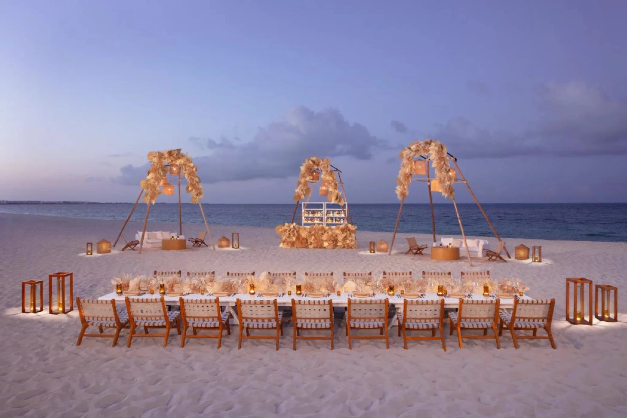 This beautiful beach is the ideal venue for large groups. It can be customized with flowers, chairs, and more.