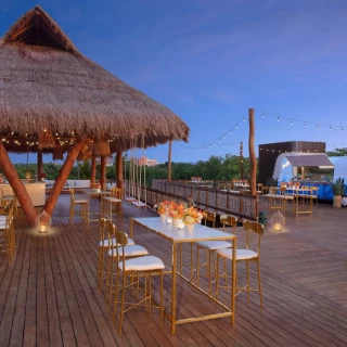 You and your wedding guests can explore 10 unique eateries and 6 bars, offering a mix of international flavors and local flair. Indulge in tacos and ceviche from the food truck, enjoy brick-oven pizza at Aglio, or savor exquisite sushi with ocean views at the rooftop Japanese restaurant. Evenings are best spent at Amber, the resort’s sunset bar, where golden-hour cocktails complement panoramic views.