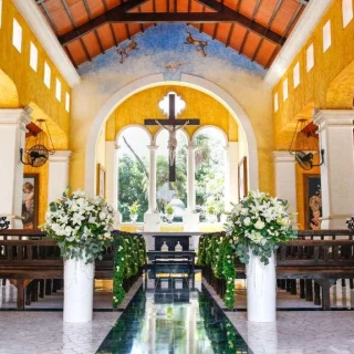 There are 4 romantic wedding venues to choose from: a gazebo that overlooks the beach, a pergola situated right on the white sand beach, a catholic chapel, and a beautiful garden gazebo.