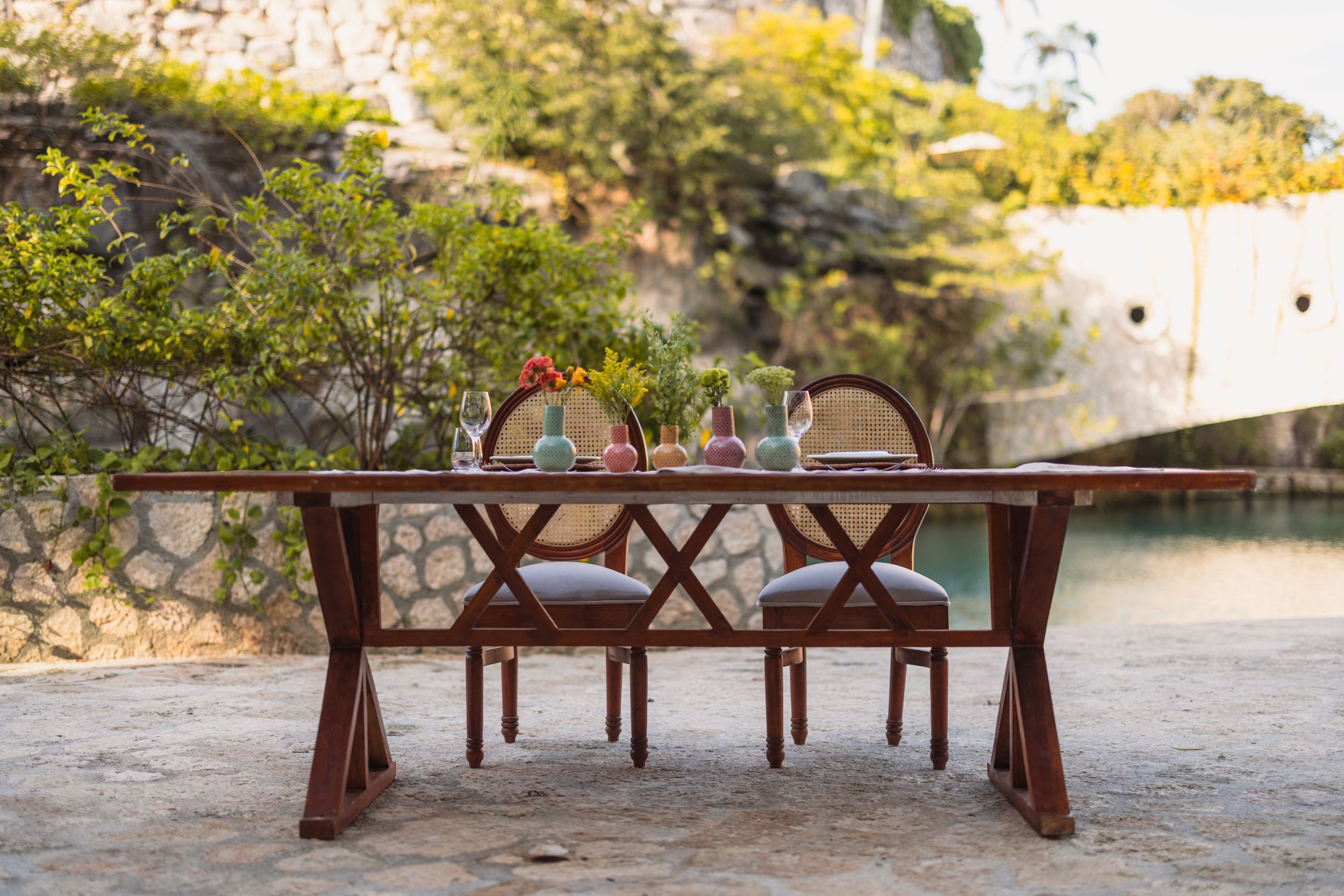 The Garden Suite is the standard suite, with 645 square feet of space to stretch out in, and views of the jungle. Beautifully designed wooden furniture is complemented by polished stone floors and stunning Mexican artwork on the walls. This suite has a sofa with a coffee table, dining table for 2, and a balcony with a traditional Mexican hammock to relax in.