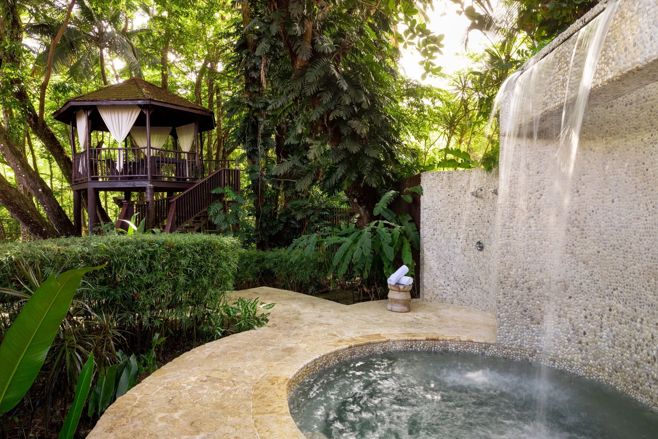 Zoëtry Marigot Bay shines with its thoughtful amenities, designed to make wedding stays stress-free and memorable. Guests enjoy VIP transfers, no check-in or check-out times, 24-hour concierge, poolside drink service, and complimentary laundry during their stay. The spa village adds a touch of indulgence with treetop treatment cabins, a plunge pool, sauna cabana, and steam inhalation room. Fitness enthusiasts can keep active with modern equipment, while relaxation-seekers can retreat to daily tea service or private wellness rituals. Every detail is handled, leaving couples and guests free to focus on the celebration.